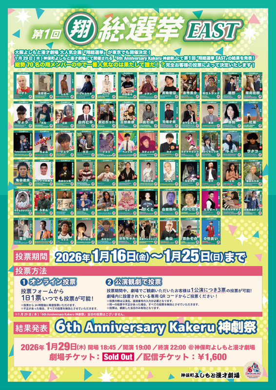 渋谷・神保町よしもと漫才劇場所属の翔メンバー(1月時点の所属メンバー)の中で人気ランキングを決定する企画!