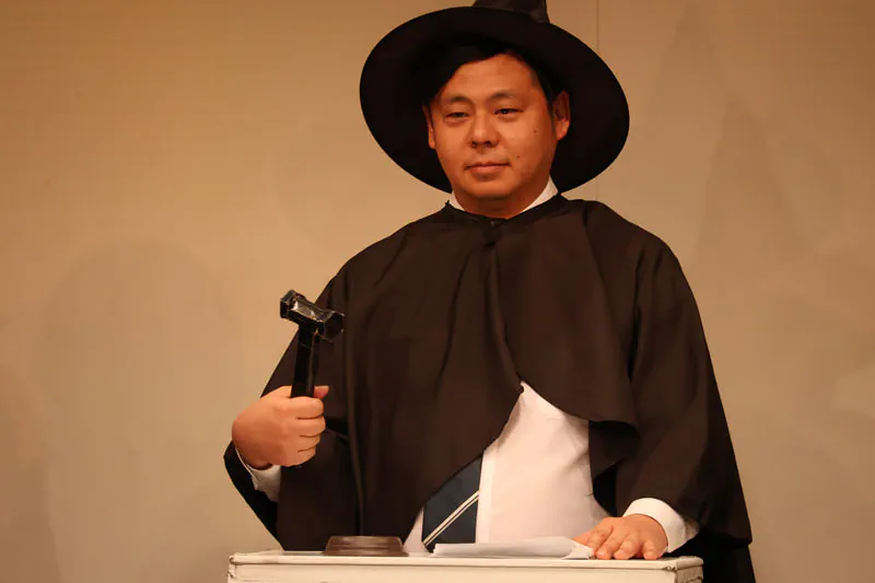 まずはライブのオリジナルキャラクター"裁判進行人"の鈴木バイダンさんが登場!